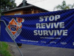 We were having a wonderful time at the expense of the Aussies, when another unfamiliar, un-American sign by an exit caught our attention: Driver Reviver. It also sported the teacup icon on our map. Plus the word “free” on the sign was enough reason for the free-loading Klines to take the exit. Driver Reviver was a serene park where friendly volunteers offered travelers free coffee, tea, hot chocolate, or water with bikkies (Spelt with two k’s and called cookies in the US; not to be confused with bikies, with one k, who are people on motorbikes.) Between trees hung banners that said Stop Revive Survive.