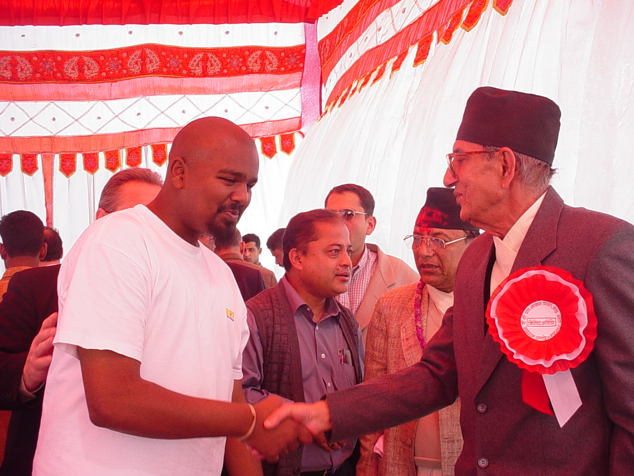 Jez with Girija Prasad Koirala. When I took this picture, we had no idea Koirala would be Prime Minister in two years