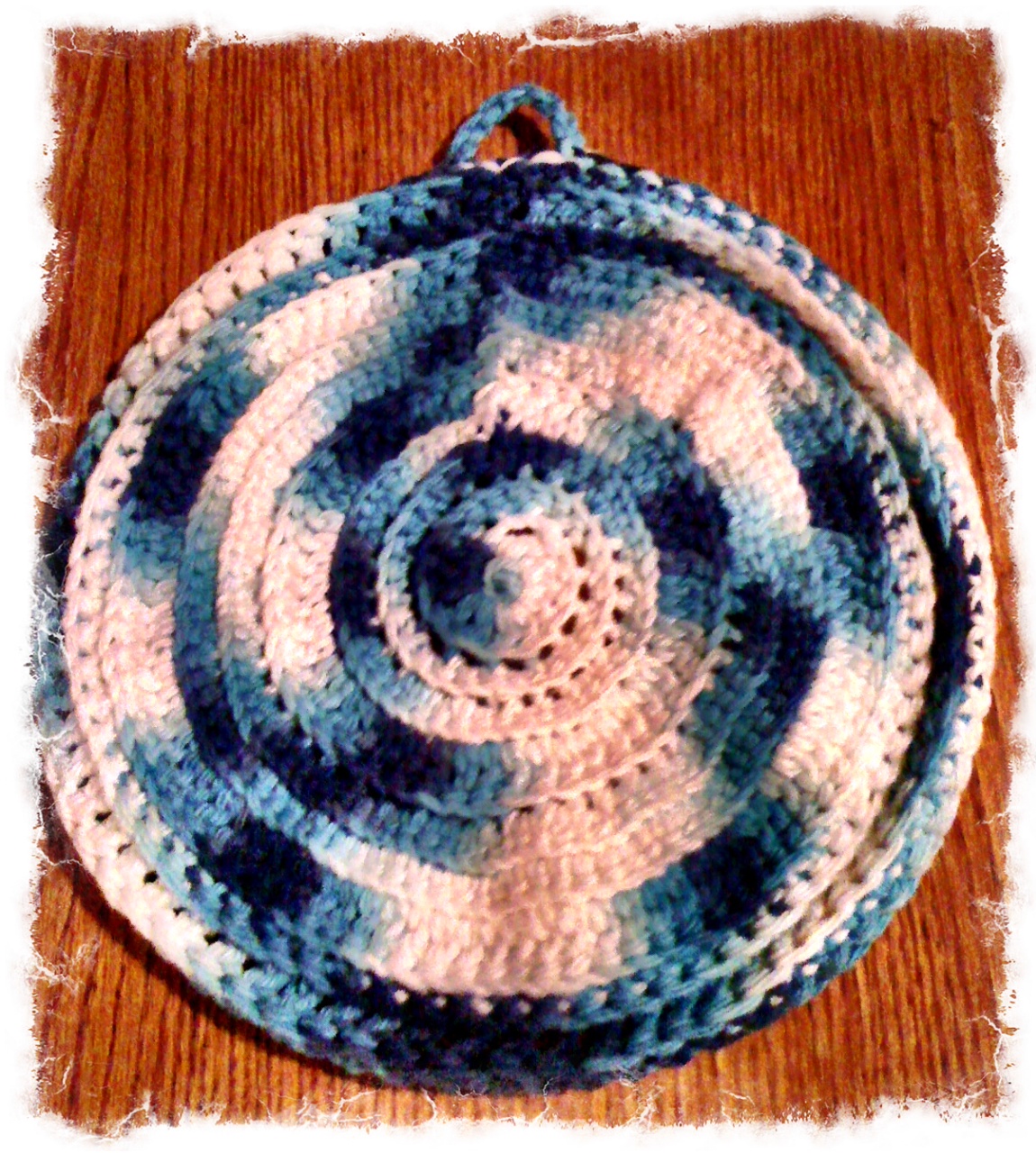 This one is quick and easy. I used a variegated cotton yarn.