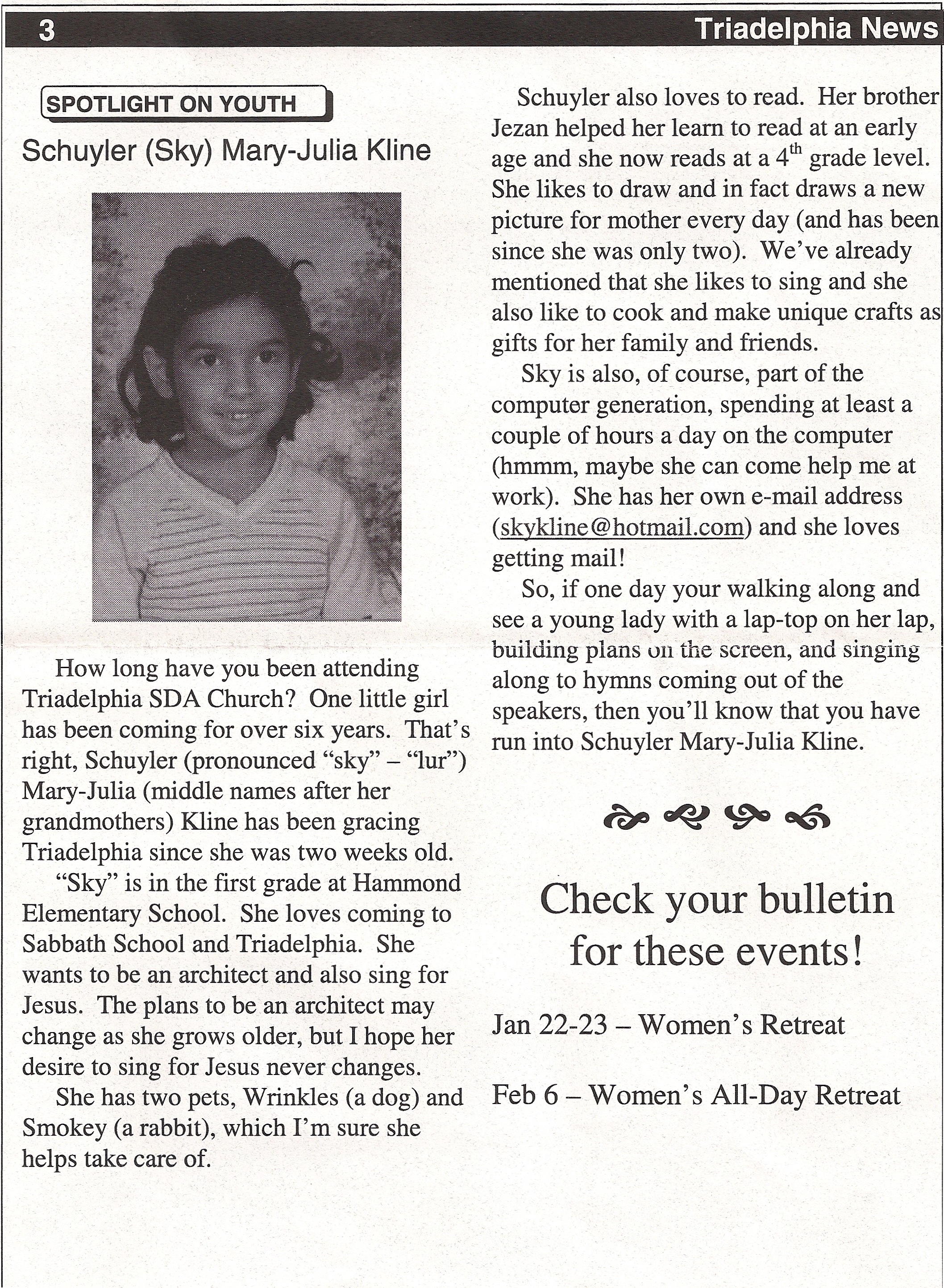 In the envelope was a card saying they still miss us and thought of us even more so when they found an old church newsletter with this article in it.