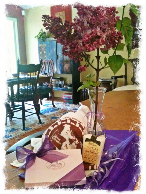Inside the bag were chocolates from Lillie Belle and cheese from Rogue Creamery–and a large cheese cloth too (Now I have no excuses not to make my own paneer.)