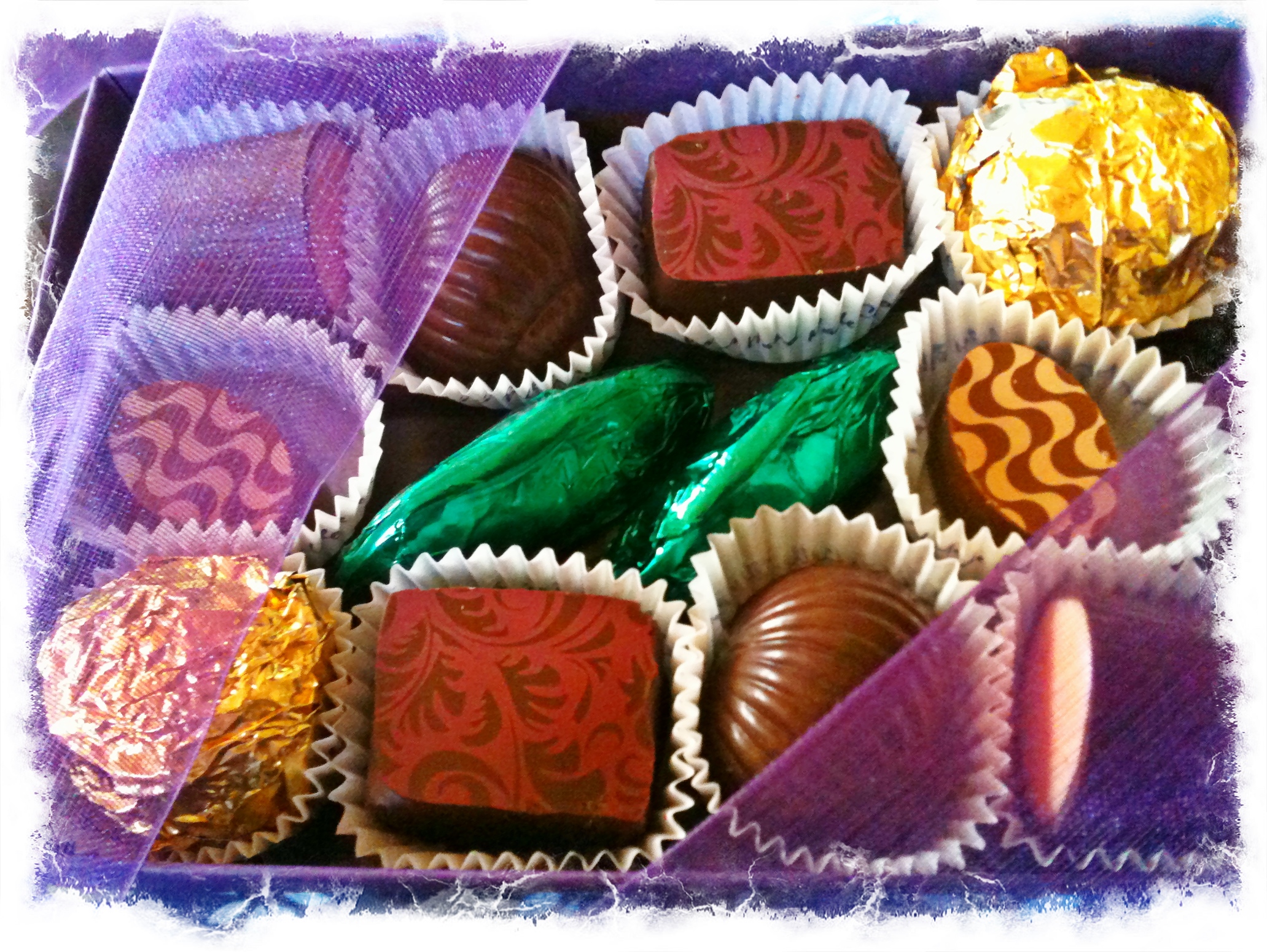 The packaging of the chocolates was purple too. Almost too pretty to open.